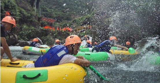 第一天,赶到清远中饭后,我们开始玩第一个项目--黄腾峡勇猛漂--全程漂流,从高处往下漂流,突然失重心动的感觉,让人胆战心惊,无比惊险刺激;冰洁的溪水清澈纯净凉爽剔透,哆嗦到底;漂流过程中的打水仗--见谁就打有人就“灭”--的感觉找回小孩般纯真无暇的简单之乐,大家可能会忘记漂流刺激的感觉,但永远不会忘却那种互不相识的游友之间的彻底放松无拘无束的相互“攻击”的无限欢声笑语……